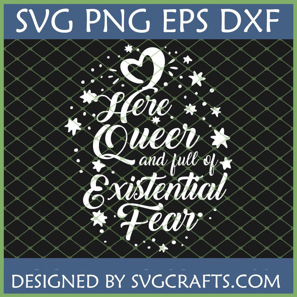 Ready to add some authentic humor to your life or craft projects? Get your Queer and Full of Existential Fear SVG from SVGCrafts today and wear your truth with a smile!