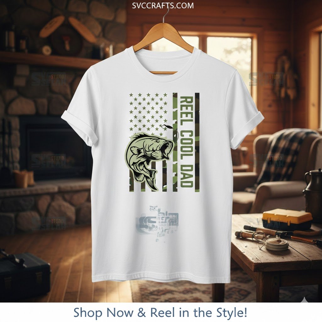 Our Reel Cool Dad Fishing SVG resonates with enthusiasts of brands like Bass Pro Shops, Cabela’s, and Yeti, known for their high-quality outdoor gear. It fits perfectly within trending niches such as ‘Outdoorsman Gifts,’ ‘Patriotic Apparel,’ ‘Camo Lifestyle,’ and ‘Father’s Day Crafting.’ This design is a favorite among the DIY community that uses Cricut and Silhouette machines to create custom apparel and personalized items, often sharing their creations in online crafting groups and social media challenges.