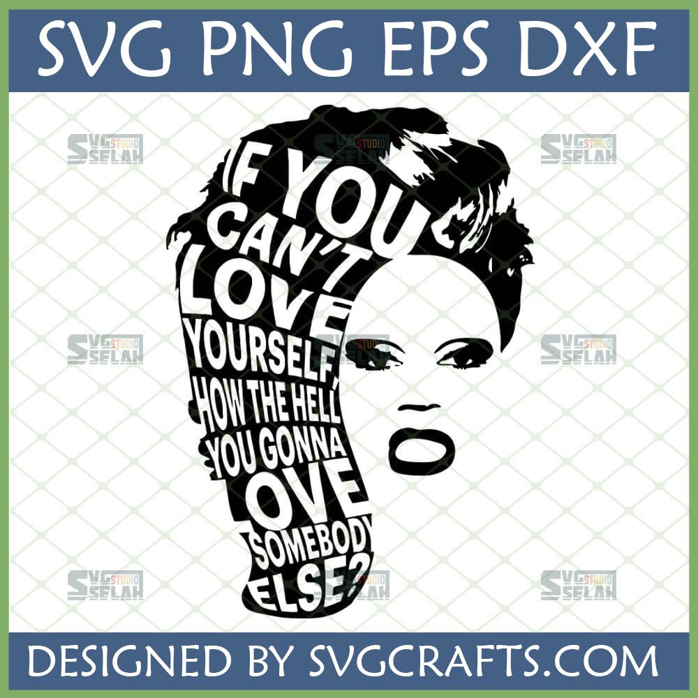 Our exclusive design beautifully captures the essence of RuPaul’s empowering words: “If You Can’t Love Yourself, How in the Hell You Gonna Love Somebody Else?”. This profound message is artistically integrated into a striking silhouette of a confident woman, making the quote an integral part of her identity and style.