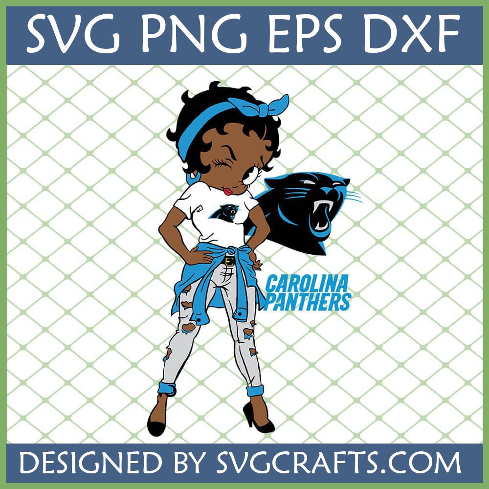 Cheer on the Carolina Panthers with fierce style! This Sassy Carolina Panthers Fan SVG PNG Design features a retro-inspired character, perfect for Cricut, sublimation, and creating unique game day apparel like t-shirts, mugs, and decals.