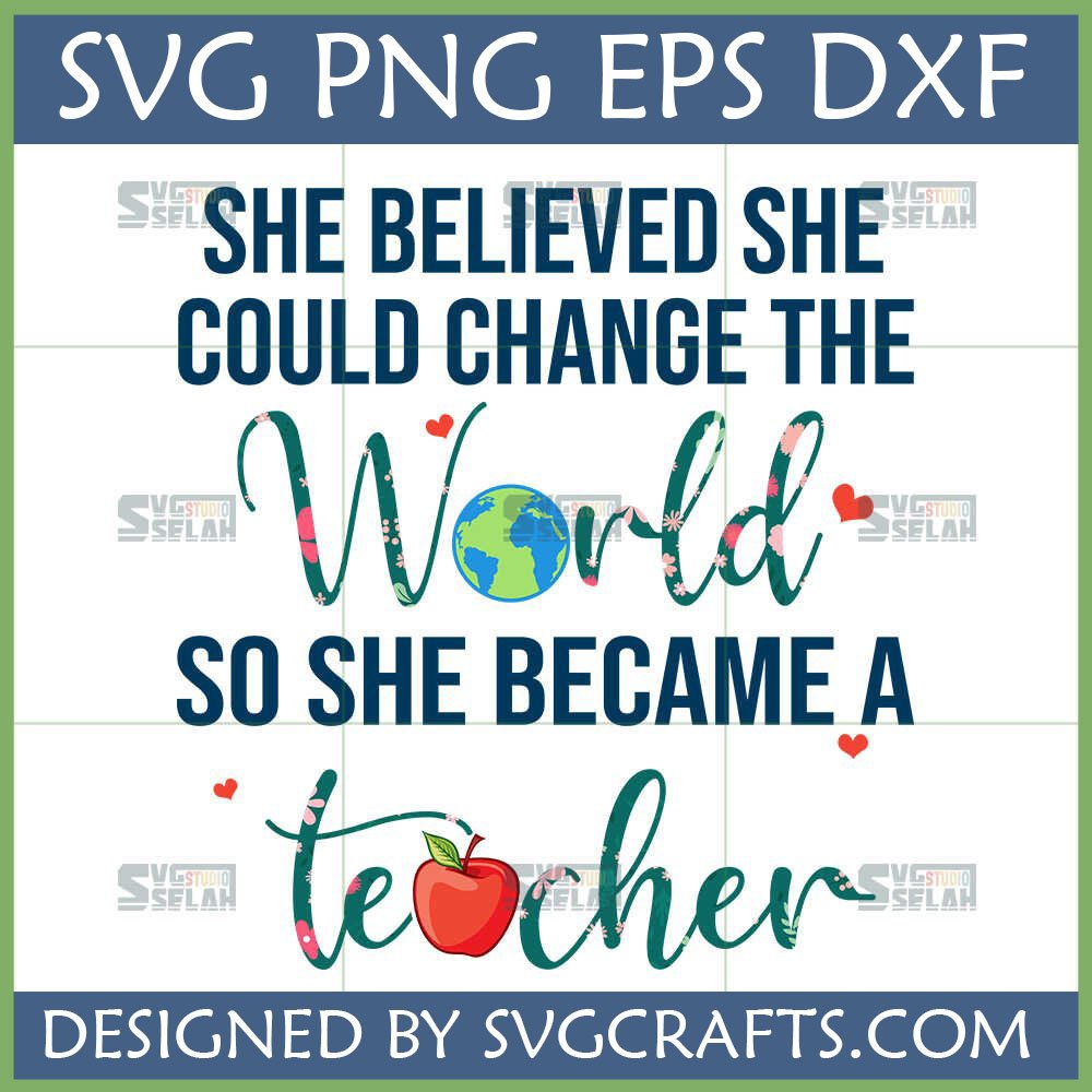Ready to honor the incredible educators in your life? Add this inspiring “She Believed She Could Change The World So She Became A Teacher” design to your collection today and start crafting gifts that truly make an impact!