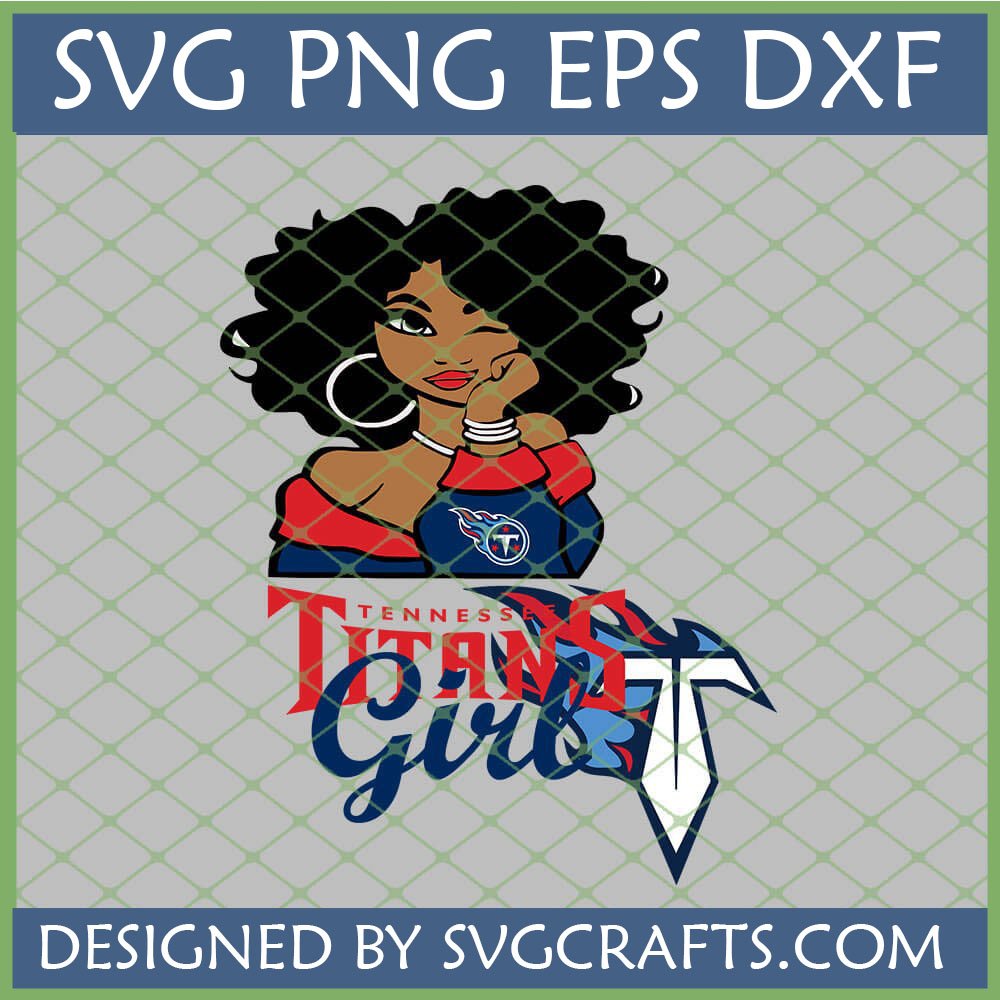 Show your ultimate team spirit with our empowering Tennessee Titans Girl SVG! This unique digital design features a stylish African American woman with curly hair, perfect for creating custom t-shirts, mugs, and more for game day with your Cricut or for sublimation.