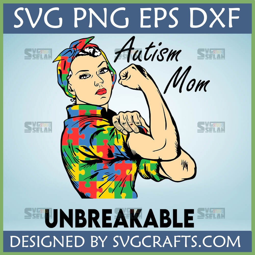 Unbreakable Autism Mom SVG & PNG Rosie the Riveter Design