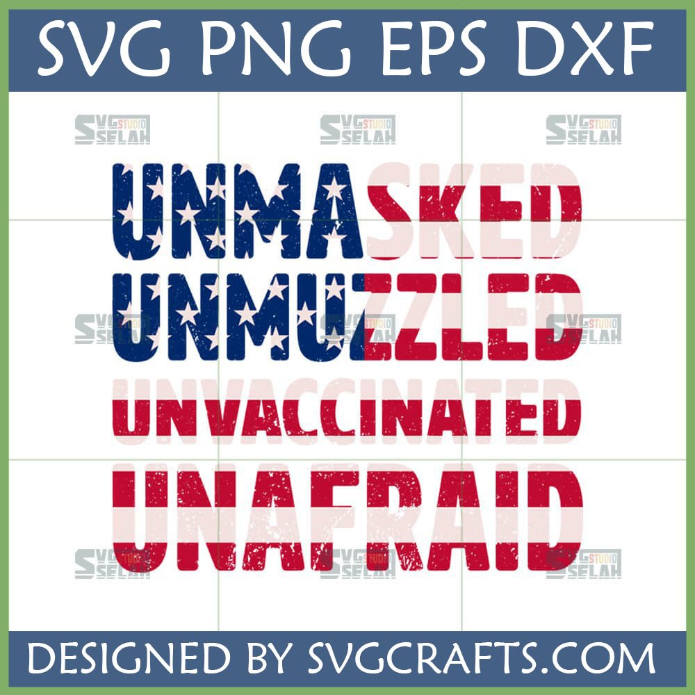 Unmasked Unmuzzled Unvaccinated Unafraid SVG PNG DXF EPS Digital Download