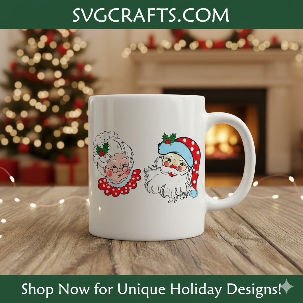 #VintageChristmas #RetroHoliday #MrsClausSanta #ChristmasSVG #DIYChristmas #CricutChristmas #NostalgicDecor #HolidayCrafts #SVGCrafts