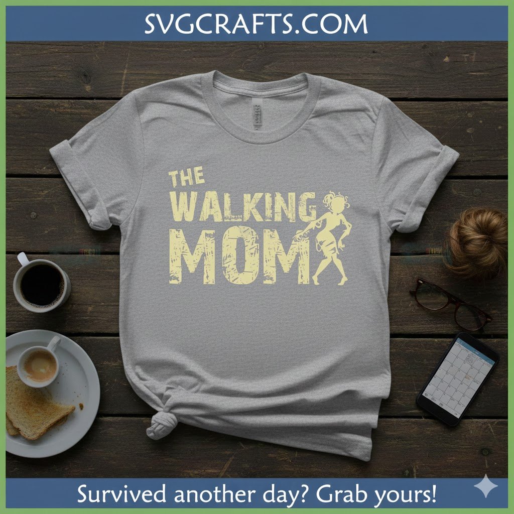 Embrace the hilarious reality of motherhood with our Walking Mom SVG PNG EPS DXF design! Perfect for Cricut, Silhouette, and sublimation, this distressed ‘Walking Dead’ parody is ideal for custom T-shirts, mugs, and gifts for every tired mom. Get your instant digital download from SVGCrafts today!