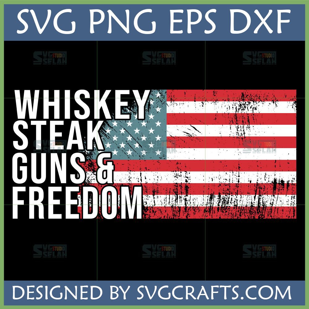 Whiskey Steak Guns Freedom SVG | Distressed American Flag Design
