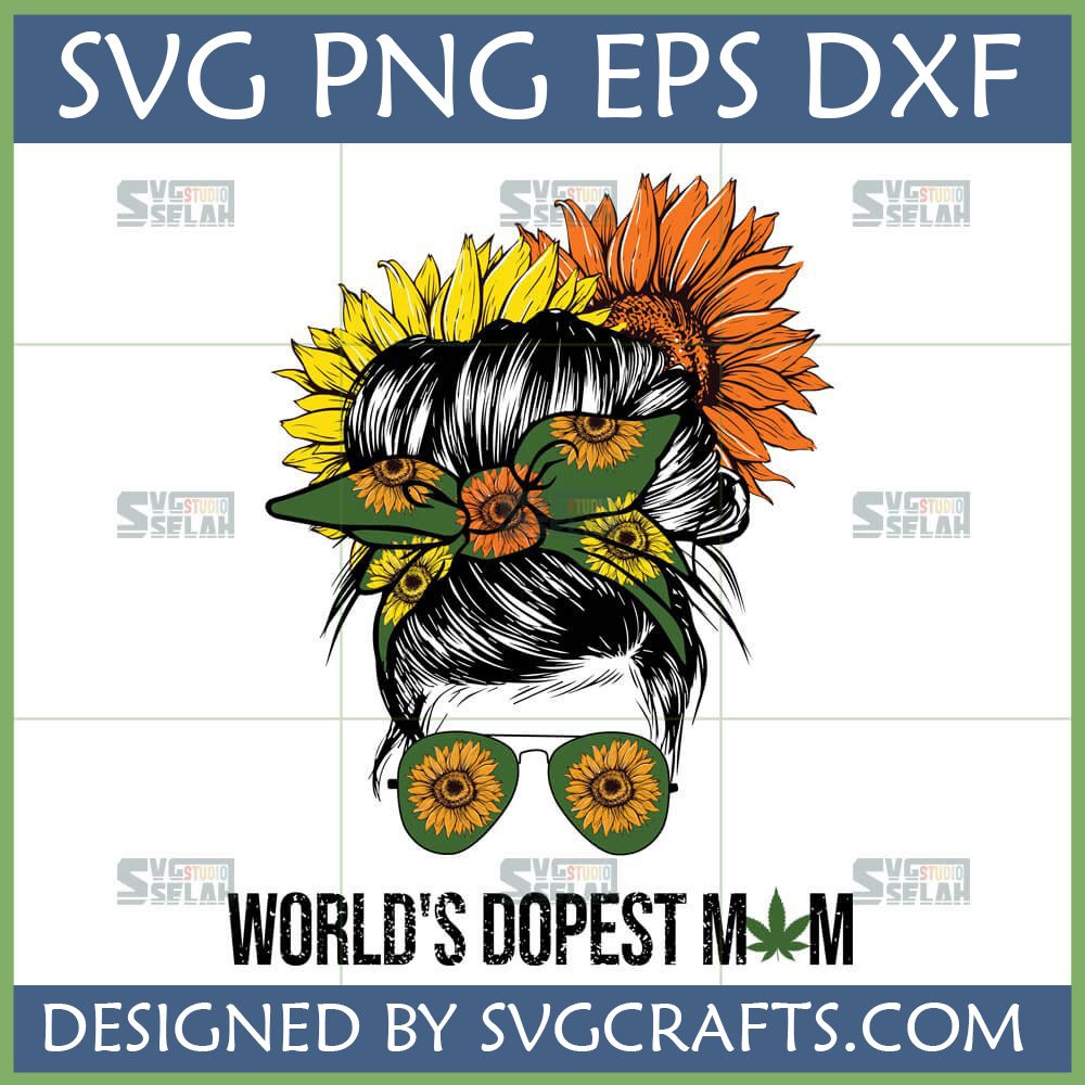 World’s Dopest Mom Messy Bun Sunflower Cannabis SVG Digital Design for Cool Moms